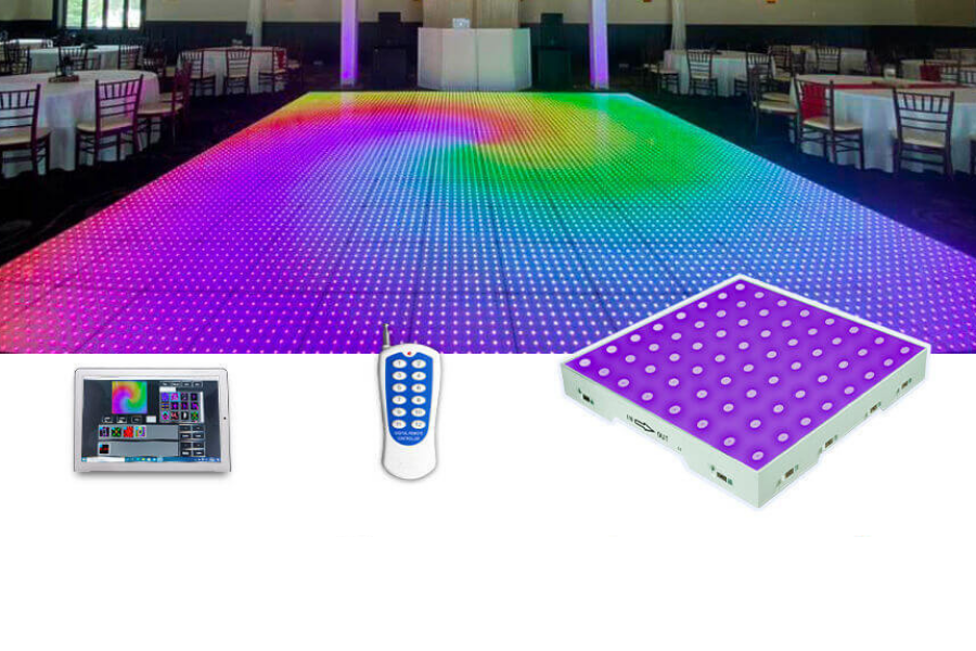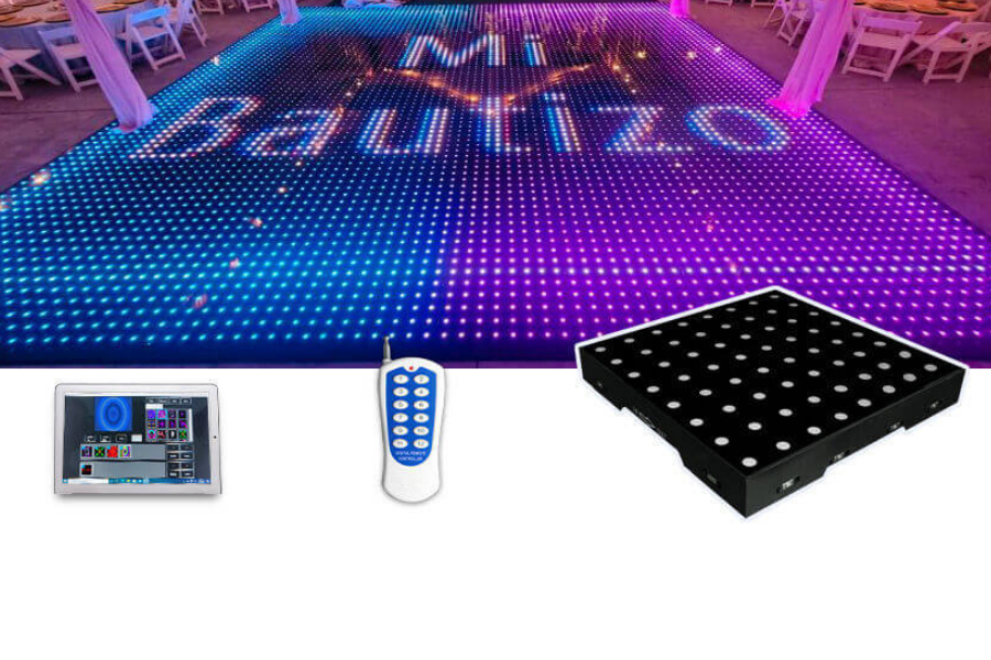 Passt die Lichteffekte, Farben und Größe des LED-Bodens an Eure individuellen Anforderungen an. Durch das robuste Material und die smarte Technik ist der LED-Boden auch die perfekte animierte Tanzfläche.